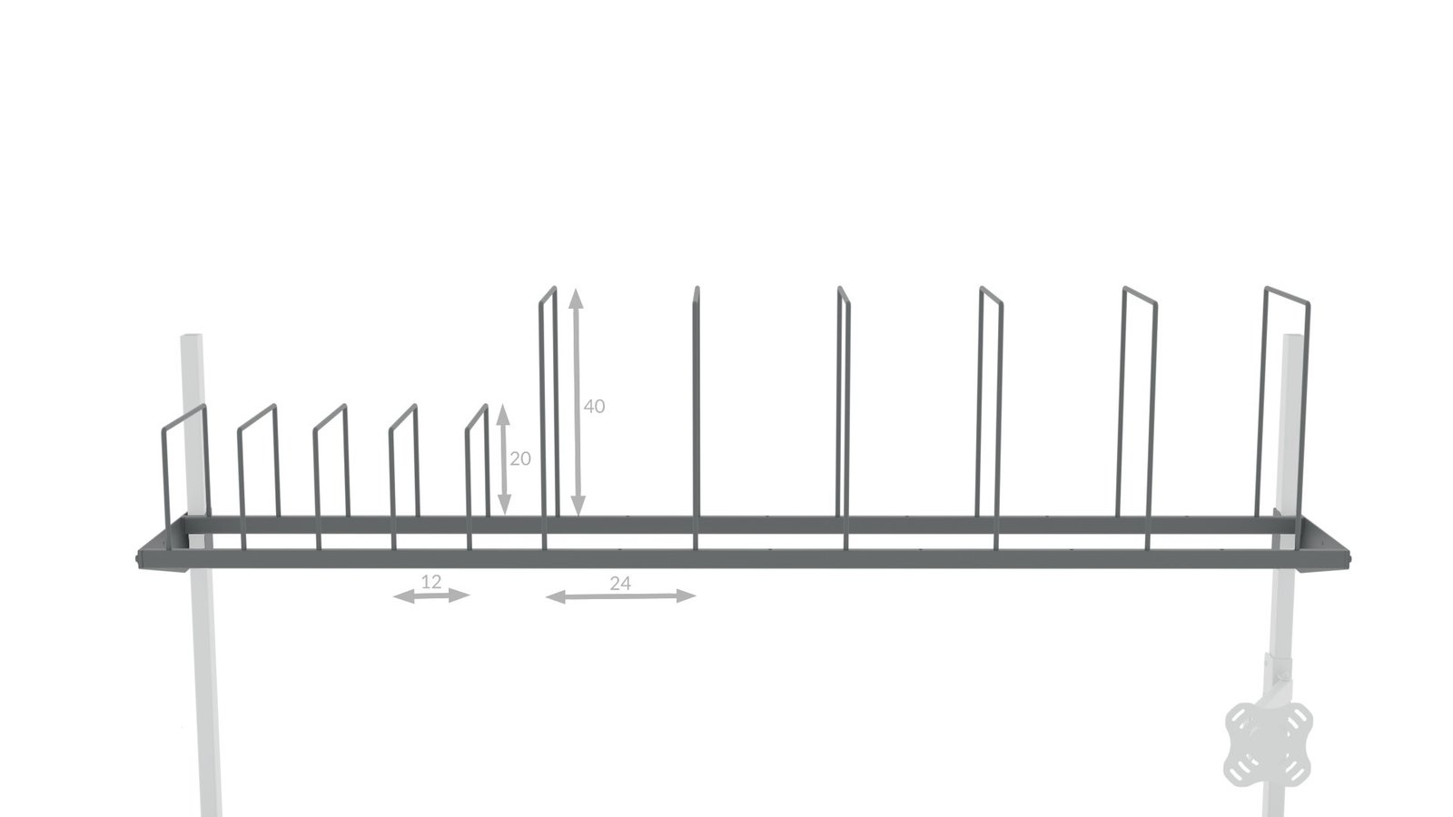 | Rozstaw regulacji przegród co 120 mm | Elastyczna organizacja przestrzeni |