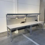 Z pomocą naszego zaawansowanego konfiguratora stołów zaprojektowaliśmy i wykonaliśmy dedykowane stoły montażowe, które idealnie odpowiadały na potrzeby klienta. Choć w projekcie wykorzystaliśmy więcej rodzajów stołów, tutaj przedstawiamy cztery kluczowe modele, które stanowiły integralną część nowej linii produkcyjnej.