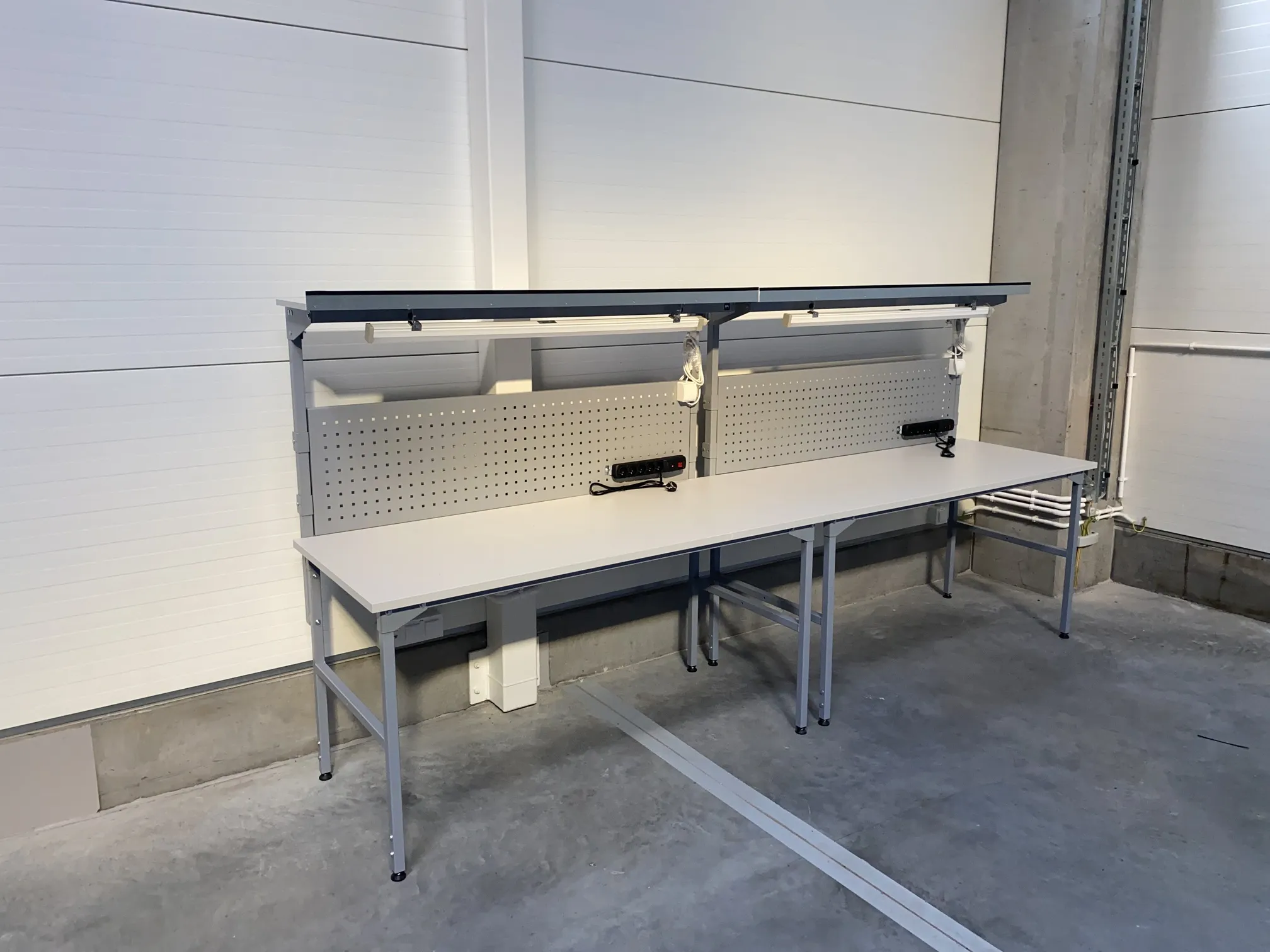 - Perforowana tablica narzędziowa, wysoka nadbudowa (166 cm), regulowana półka i centralne oświetlenie LED.