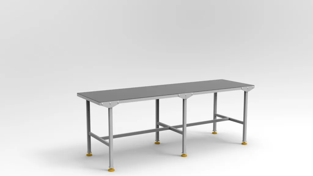 Szkielet stołu wykonano z profili stalowych 40×40×3 mm oraz 40×30×2 mm, co zapewnia wyjątkową sztywność i stabilność nawet przy maksymalnym obciążeniu 600 kg.